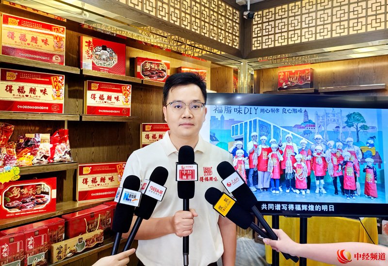 图为:中山市得福肉食制品有限公司总经理何权辉先生接受中经频道采访(申成勇/无人机拍摄)