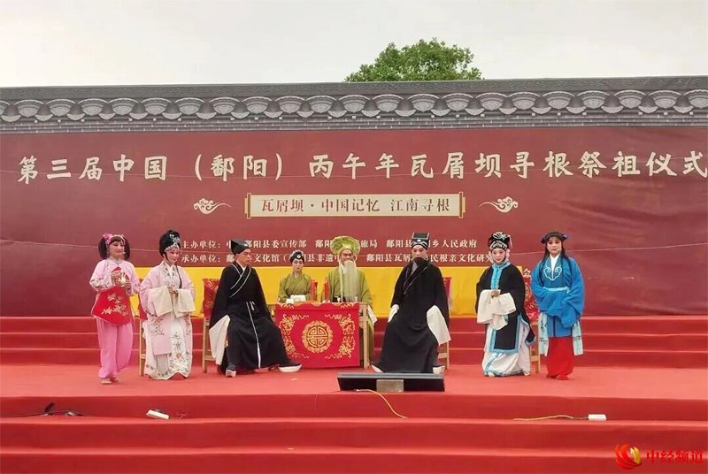 上午8时30分,大典暖场环节拉开帷幕。现场播放了《瓦屑坝文化宣传片》,带领来宾重温那段波澜壮阔的移民史。鄱阳地方特色饶河戏《寻根记》精彩上演,深情朗诵《鄱湖颂歌》、少年儿童谣曲《瓦屑坝谣》,赢得阵阵掌声。知名歌手胡建烽登台献唱《天下一家亲》,悠扬的旋律唱出了移民后裔血脉相连、四海一家的共同心声。