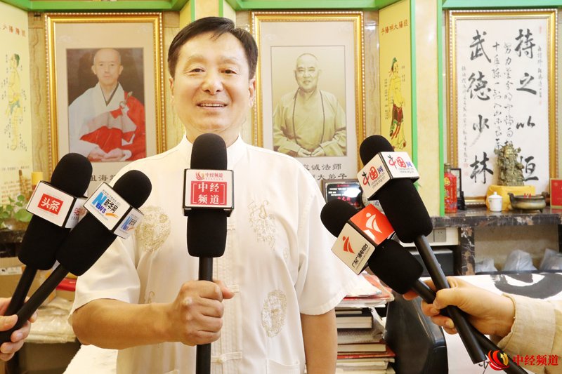 图为:邵建国教练接受中经频道采访(申成勇/摄)