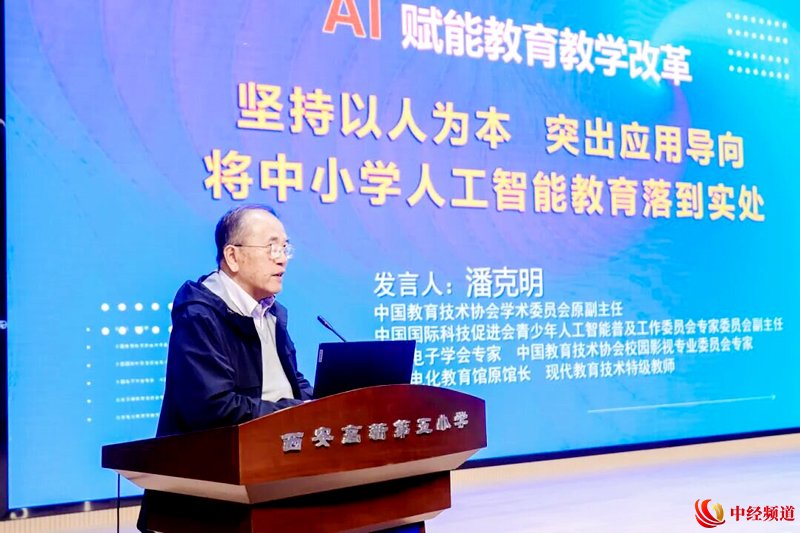 图为:教育部全国中小学现代教育实验学校专家指导委员会指导专家、中国教育技术协会学术委员会副主任潘克明