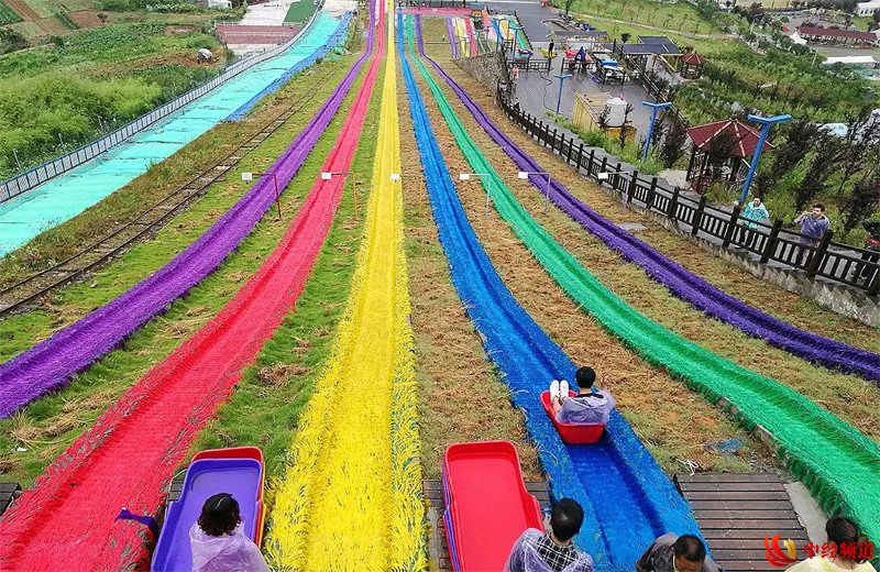 滑道两侧绿意盎然,阳光透过树影洒在草地上,营造出一种自然与运动完美融合的氛围。在滑行过程中,既能感受速度带来的快感,又能欣赏四周的田园风光,仿佛置身于一幅动态的山水画中。