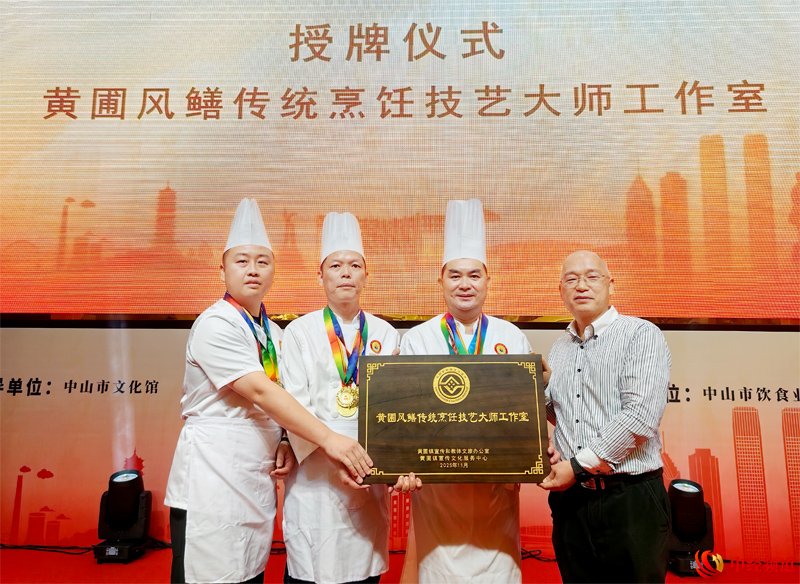 揭牌仪式上,中山市文化广电旅游局文化遗产科副科长林伟杨颁发“黄圃风鳝传统烹饪技艺”市级非遗牌匾,黄圃镇党委副书记、镇长唐国伟代为接收。在与会来宾的见证下,市镇领导嘉宾共同为“黄圃风鳝体验馆”揭牌。现场,津津海鲜酒楼还与大湾区名厨签约成立“黄圃风鳝传统烹饪技艺大师工作室”,并向3位深耕风鳝烹饪领域多年的资深厨师颁发“黄圃风鳝传统烹饪技艺大师”荣誉证书。