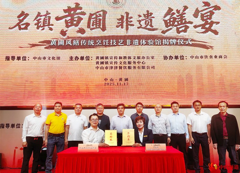 据詹泽华介绍,黄圃风鳝非遗体验馆将依托津津海鲜酒楼古色古香的环境风格与传统烹饪的技艺优势,打造出“文化展示+技艺体验+美食品鉴”三位一体的美食品鉴空间,通过播放展示渔民捕捞黄圃风鳝的视频图片,向食客直观呈现水乡民众淳朴传统的生活方式和与之相应的饮食文化。此外,津津海鲜酒楼还与中山市餐饮协会签约“牵手”成立“非遗美食推广联盟”,合力推动非遗美食传播,为水乡饮食文化注入新活力。中山市政协委员、黄圃镇宣传委员李华军致辞时表示,黄圃风鳝不仅是餐桌上的美味,更是承载水乡记忆与文化基因的非遗瑰宝。一直以来,黄圃镇党委、政府高度重视非遗技艺的传承与推广,相信黄圃风鳝体验馆揭牌后,不仅是打造了一个特色消费场所,更是建成了传递黄圃文化、联结四方情感的“城市会客厅”,与黄圃腊味煲仔饭非遗体验馆一道,并肩携手,熠熠生辉,成为游客打卡的又一个“黄圃网红点”。同时,黄圃镇将以此次体验馆揭牌为契机,持续推动“非遗+文旅”融合发展,支持传承人与餐饮企业开展技艺传习、菜品创新与文化传播。让黄圃风鳝传统烹饪技艺在新时代焕发新光彩,助力黄圃打造成为更具影响力的历史文化名镇与美食文化新高地。