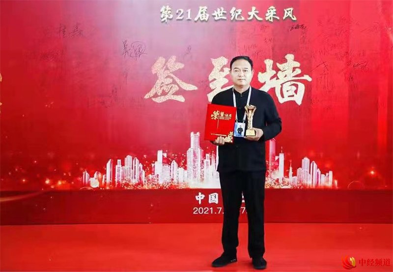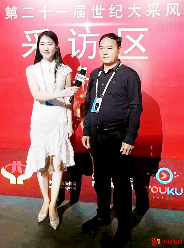 图为:毛立志活动现场接受中央广播电视总台采访