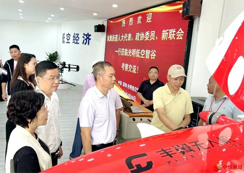 中经频道网4月12日(申成勇 韩学艳 发自深圳)为深入调研低空经济产业发展态势,助力文旅与科技融合创新,4月10日下午,深圳市光明区凤凰街道人大代表、政协委员及新联会凤凰分会一行在凤凰街道副书记、人大主任叶贻宏和副书记、一级调研员李新贵的带领下莅临光明低空智谷・无人机乐园开展专题调研指导。光明区政协委员、聚光(深圳)低空产业发展有限公司董事长刘向辉,光明低空智谷总经理谢盛雷、副总经理杨德润全程陪同,系统介绍园区规划、产业布局与运营成效。