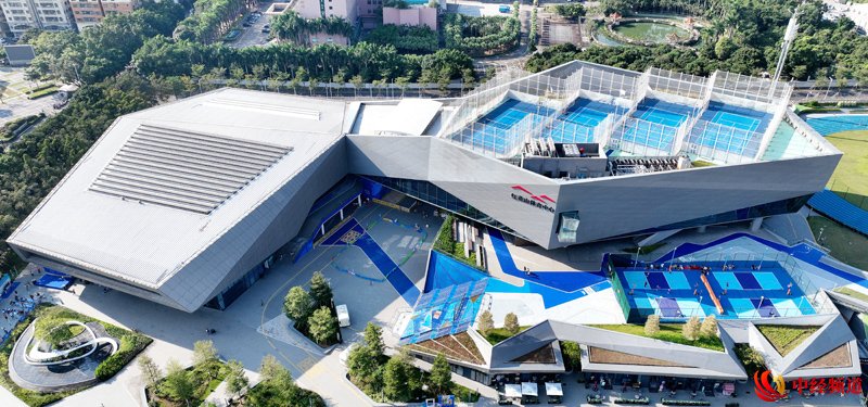 图为:赛事举办地——深圳市光明区红花山体育中心(申成勇/无人机拍摄)