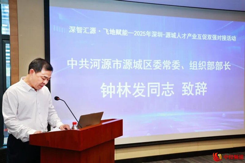 中经频道网10月17日电(申成勇 韩学艳 黄群展 发自深圳)为推动深圳与河源在人才、产业方面的深度融合与协同发展,贯彻落实省委省政府“百千万工程”及“百万英才汇南粤”部署要求,10月16日,由深圳人大代表人力资源产业联系点、中共河源市源城区委组织部等单位共同举办的“深智汇源·飞地赋能——2025年深圳、河源人才产业互促双强对接活动”在华南地区首个国家级人力源产业园——天安云谷成功举行。活动汇聚了深河两地政府部门、重点企业、高校科研机构及高层次人才代表。深圳市人大常委会代表工委主任杨云彪,龙岗区人大常委会代表工委主任陈霜,龙岗区坂田街道党工委副书记、人大工委主任刘习飞,龙岗区人力资源局副局长刘金洲,深圳市人大代表、深圳人大代表电子信息产业联系点召集人江微,深圳人大代表人力资源产业联系点副召集人林锐超以及河源市源城区委常委、组织部部长钟林发,深圳对口帮扶河源指挥部副总指挥长林劲民等领导出席。