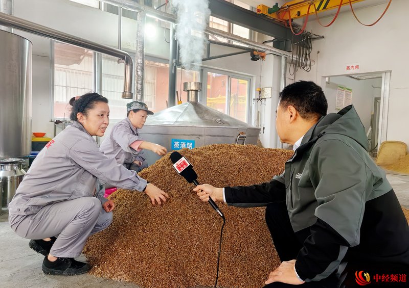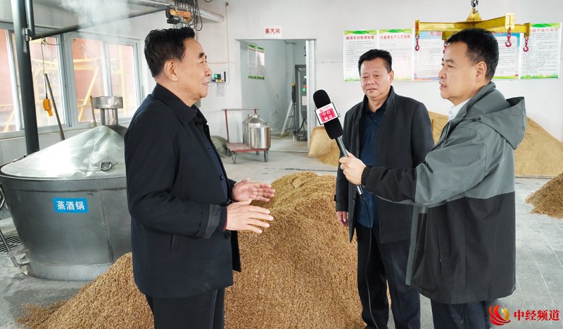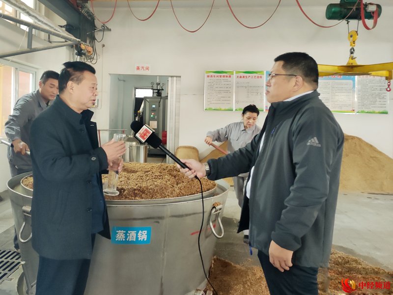 图为:安阳市豫北酿酒有限责任公司酿酒工程师吴金富接受中经频道采访(韩学艳/摄)