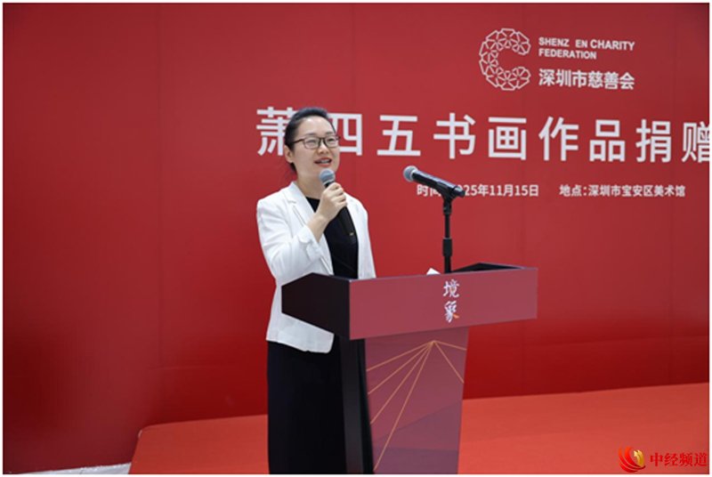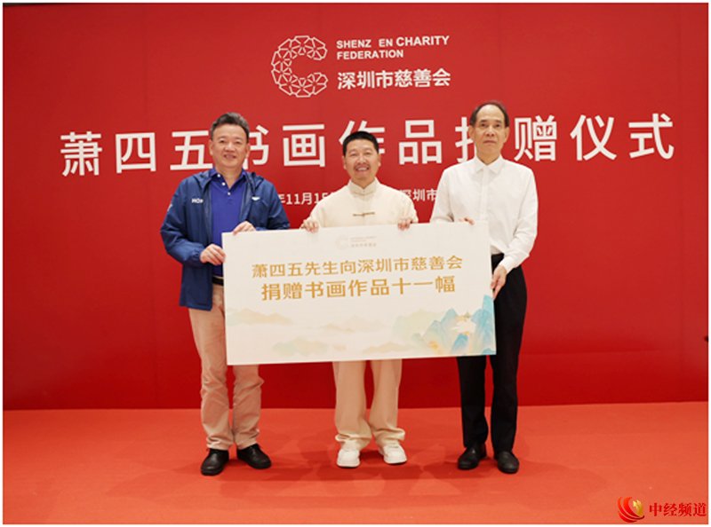 中经频道网11月116日电(申成勇 韩学艳 达瓦次仁 发自深圳)11月15日下午,“萧四五书画作品捐赠仪式”在深圳市宝安区美术馆隆重举行,著名人文书画艺术家萧四五现场向深圳市慈善会无偿捐赠11幅人文书画精品,以艺术之力为鹏城慈善事业注入新活力。本次活动不仅是一场“以艺载善、以善润心”的公益实践,更标志着深圳市慈善会在“艺术+慈善”融合发展领域的全新探索,为深圳慈善事业创新发展写下生动注脚。
