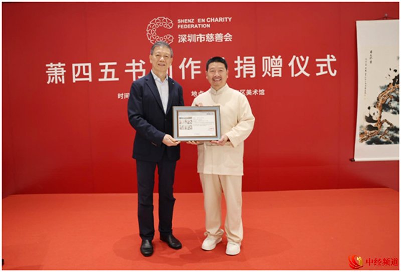 仪式现场,深圳市慈善会会长、市政协原主席戴北方为萧四五颁发捐赠证书及“艺术慈善大使”荣誉证书。“我们期待未来能与更多的艺术家、体育界人士及社会各界携手,共同探索慈善事业创新发展的无限可能。”市慈善会副会长叶征航在致辞中表示,萧四五先生的善举为深圳“艺术+慈善”模式提供了宝贵范例,也为深圳市慈善会推动公益创新带来新启发。
