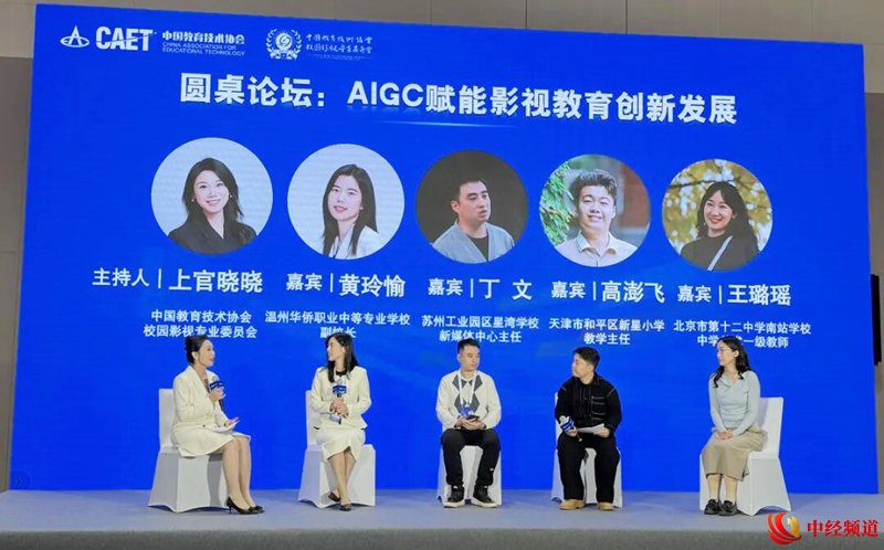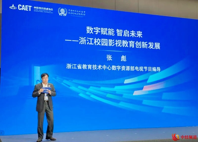 浙江省教育技术中心数字资源部电视节目编导、浙江省校园影视专业委员会秘书长张彪则从“数字赋能”角度出发,以《数字赋能 智启未来——浙江校园影视教育创新发展》为题,全面呈现了浙江在数字教学资源建设与AI技术深度融合方面的积极探索,为与会者带来深刻启发。此外,在“AIGC赋能校园影视教育创新发展”圆桌论坛上,校园影视专委会特邀温州华侨职业中等专业学校副校长黄玲瑜、苏州工业园区星湾学校新媒体中心主任丁文、天津市和平区新星小学教学主任高澎飞、北京市第十二中学南站学校中学美术一级教师王璐瑶等一线骨干教师代表共聚现场,展开深入对话。