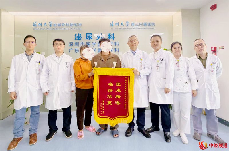 中经频道网1月21日电(申成勇 韩学艳 韦建诚 何嘉鸿 发自深圳)1月18日上午,来自海南文昌的患者陈某的家属,将一面写有“医术精湛,名扬华夏”的锦旗,赠予深圳市罗湖医院集团罗湖区人民医院(深圳大学第三附属医院)泌尿外科首席专家杨江根及其团队,以感谢医护人员成功为其切除了折磨其多年的右侧肾上腺罕见巨型肿瘤,解除了患者的多年病痛。